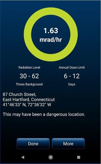 GammaPix™ Pro smartphone apps can measure 20 μSv/hr (2 mRad/hr) within ~15 sec. GammaPix™ software running on exposure-optimized cameras with a covered lens detects 1 μSv/hr (0.1 mRad/hr) in <2 min. GammaPix™ running on security video cameras detect ~ 50 to 150 μSv/hr (5 to 15 mRad/hr) within ~30 sec.